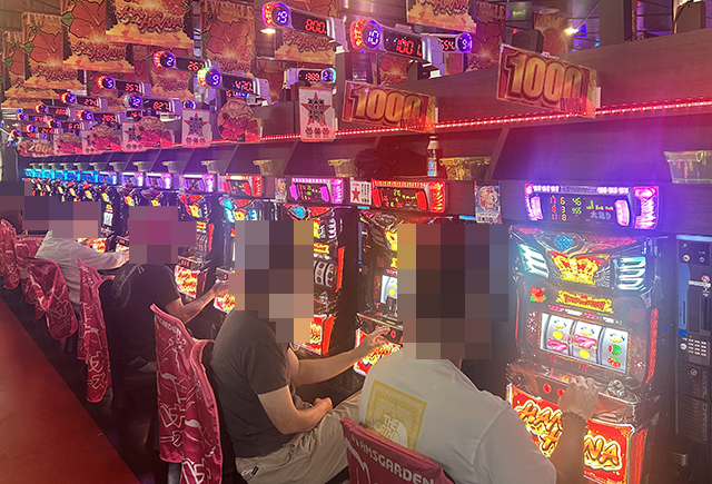 10月26日、沖縄県うるま市にある「アムズガーデン赤道店」へと向かった。今回の取材は、「華盛り取材」。ハナハナシリーズなどが盛り上がっており、随所に華やかな景色が広がっていた。