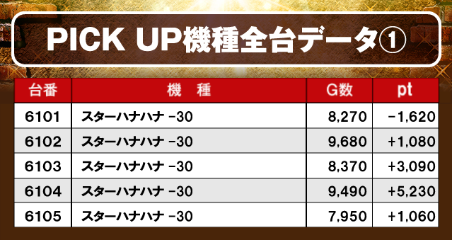 今回全台で盛り上がりを見せたのが『スターハナハナ-30』と『ウルトラミラクルジャグラー』の2機種だ!両機種はまとまったptを獲得かつ高稼働を記録し、機種のパフォーマンスが好調であったことが窺えるだろう。