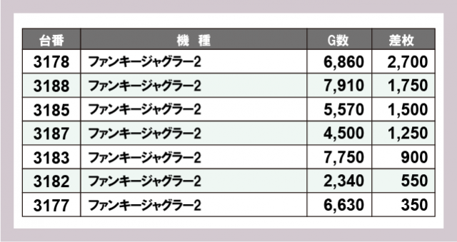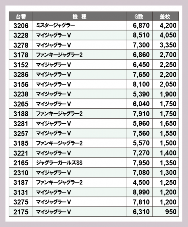 ジャグラー差枚ランキング