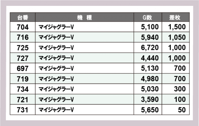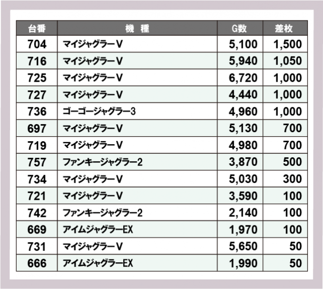 ジャグラー差枚ランキング