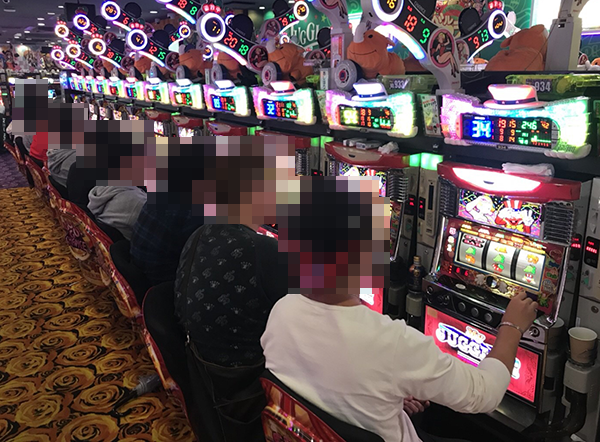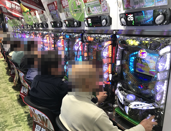 定番機種である海物語シリーズも高稼働となっており、見事なパフォーマンスを披露するプレイヤーを確認している。