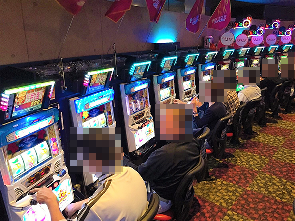 神奈川県川崎市にあるパチスロ専門店となっており、取材時の店内には多くのプレイヤーが集まっていた。
