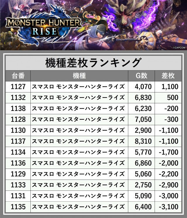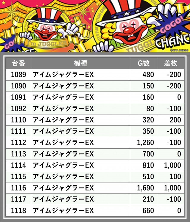 厳選された取材対象機種をはじめ、その他スロット全体から好記録が飛び出した!プレイヤーが楽しんだ1日を下記データにて振り返ってみて欲しい。