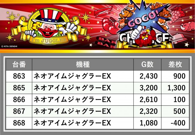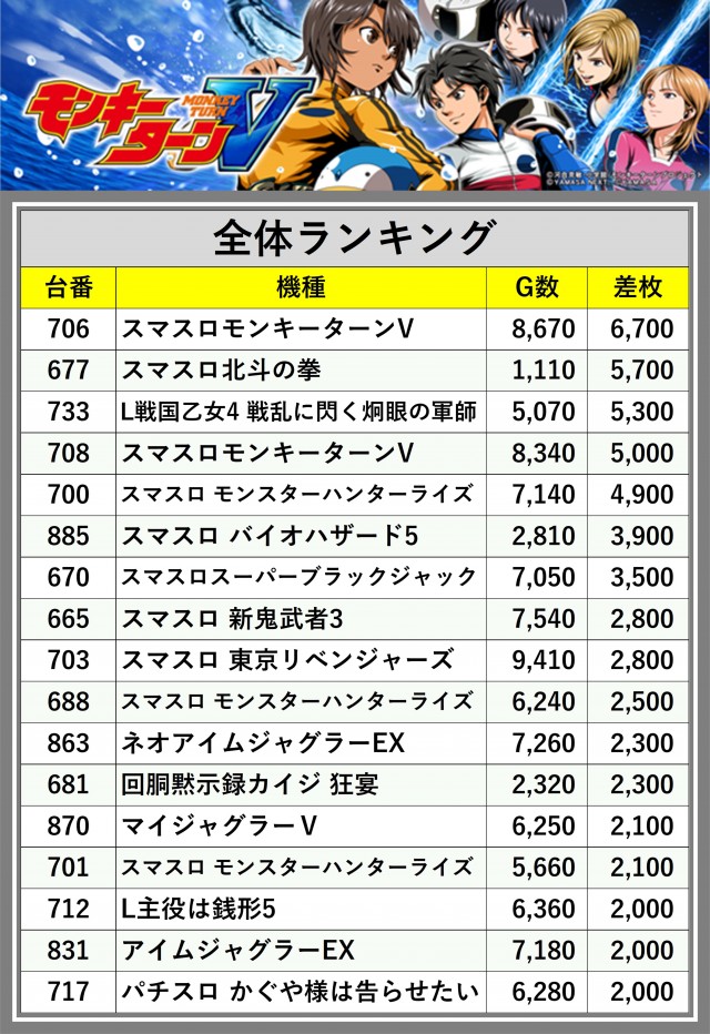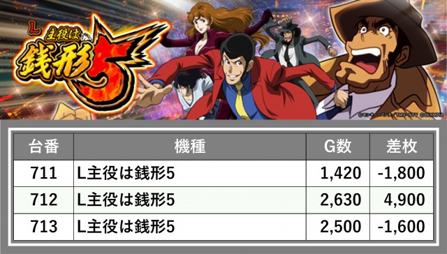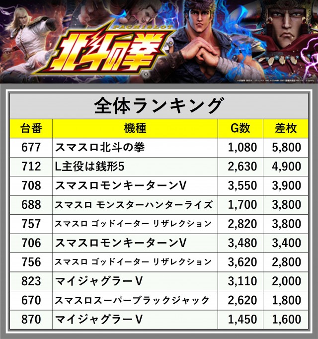 厳選された取材対象機種をはじめ、その他スロット全体から好記録が飛び出した!プレイヤーが楽しんだ1日を下記データにて振り返ってみて欲しい。