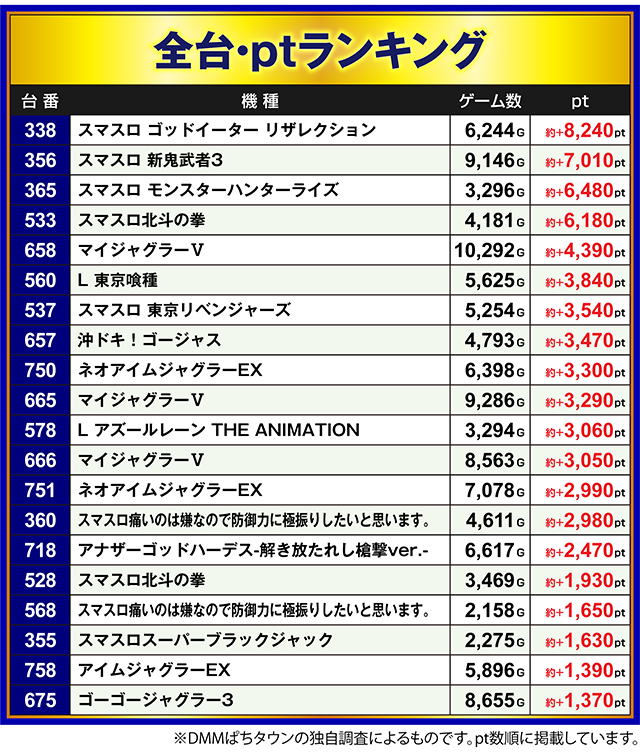 ※なお、本記事中のデータは全てDMMぱちタウンの独自調査によるものです