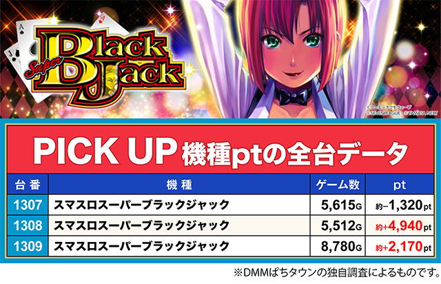 「スマスロスーパーブラックジャック」の1308番台が約+5,000ptクラス!!