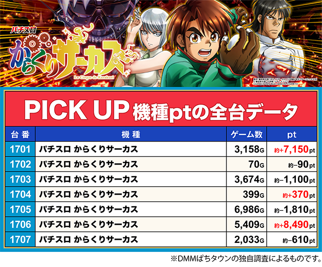 「パチスロ からくりサーカス」では、1706番台が約+8,490pt!