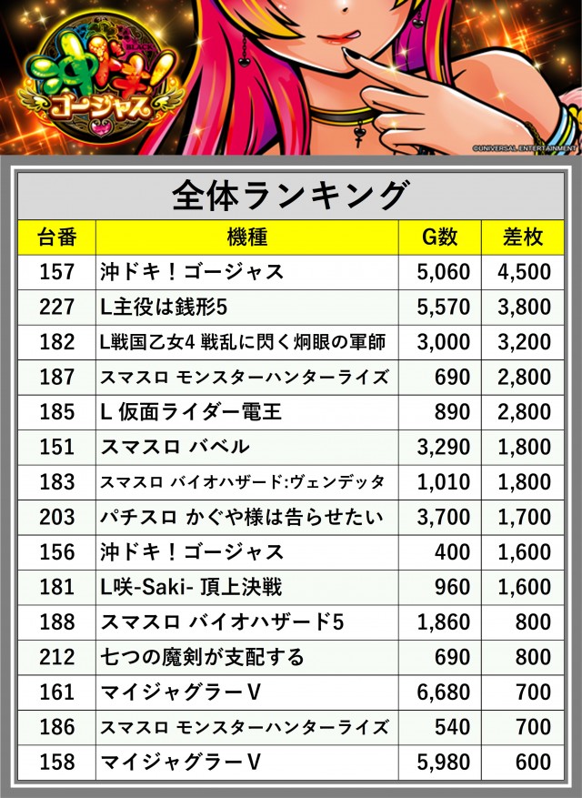 ※差枚数順に掲載しています
