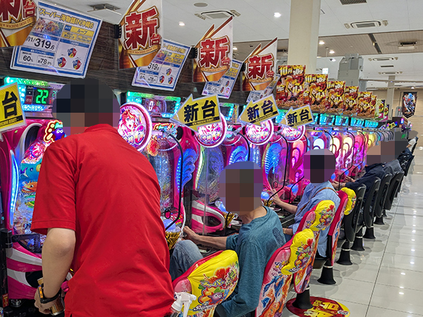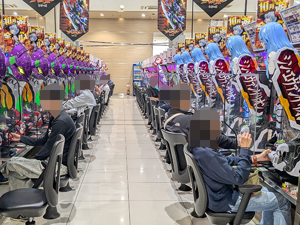 200円/184玉パチンコの支持も厚い。遊技を楽しむプレイヤーたちの姿が印象に残っている。
