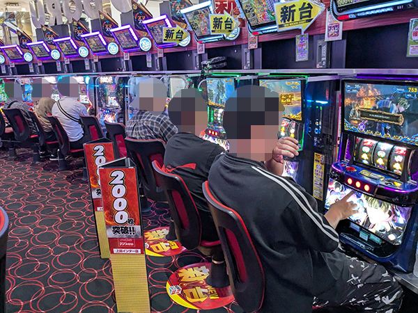 1000円/184枚パチスロは全体的に高稼働。空き台が見当たらないほどの盛況ぶりだった。