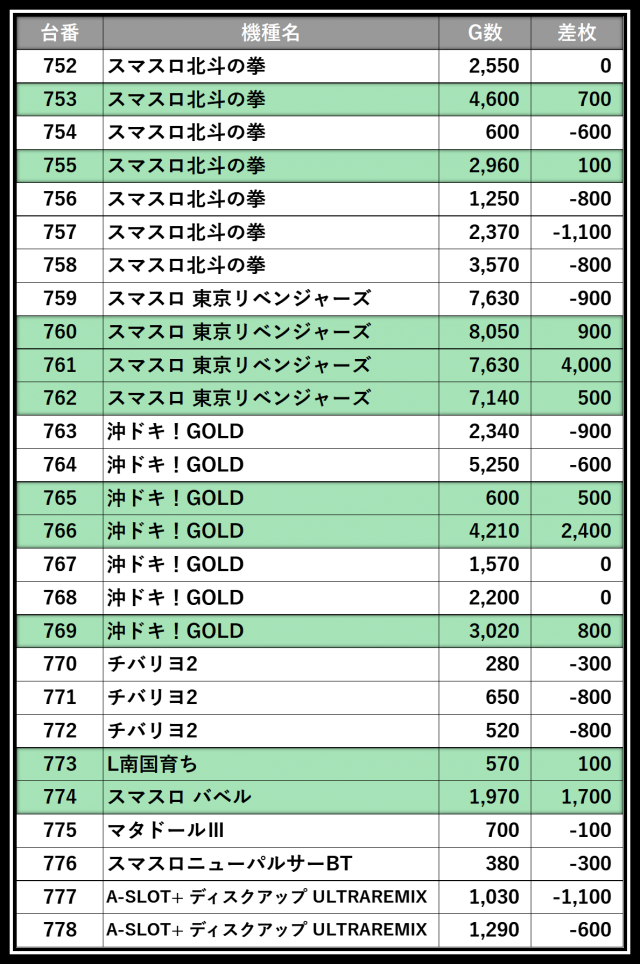 その結果の中から、ぱちタウンが注目すべきポイントを厳選してユーザーにお届け!プレイヤーが楽しんだ一日を下記データにて振り返ってみて欲しい。