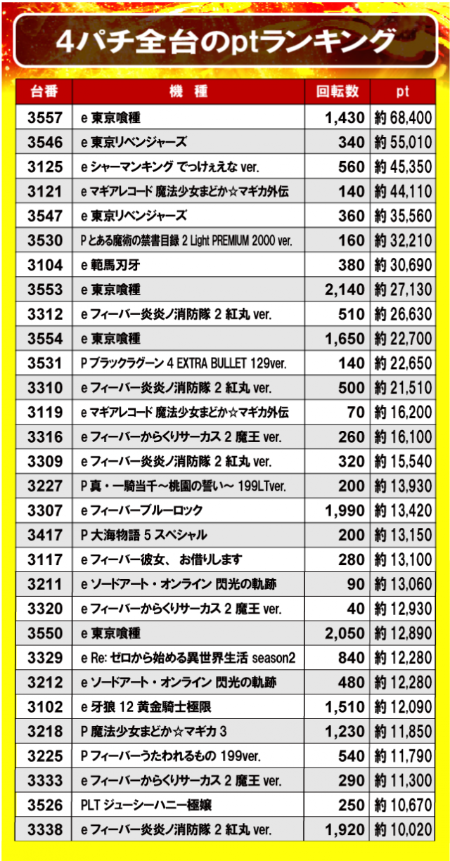 ②4パチ全台のptランキング