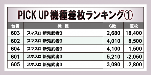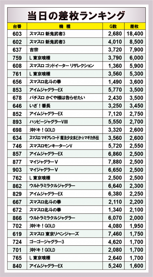 ※差枚数順に掲載しています。