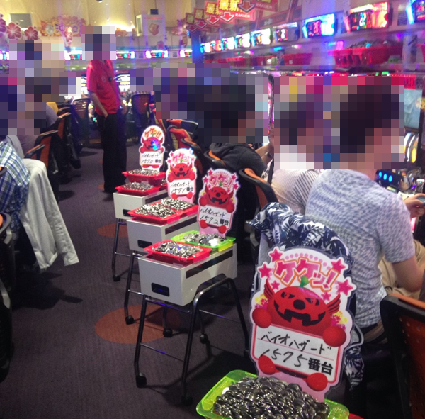 15時を過ぎた頃のパチスロコーナーで、ひときわ目立っていたのが「バイオハザード5」だ。最高のパフォーマンスを発揮する台が多数あり、遊技しているプレイヤーは満面の笑みを浮かべていた。