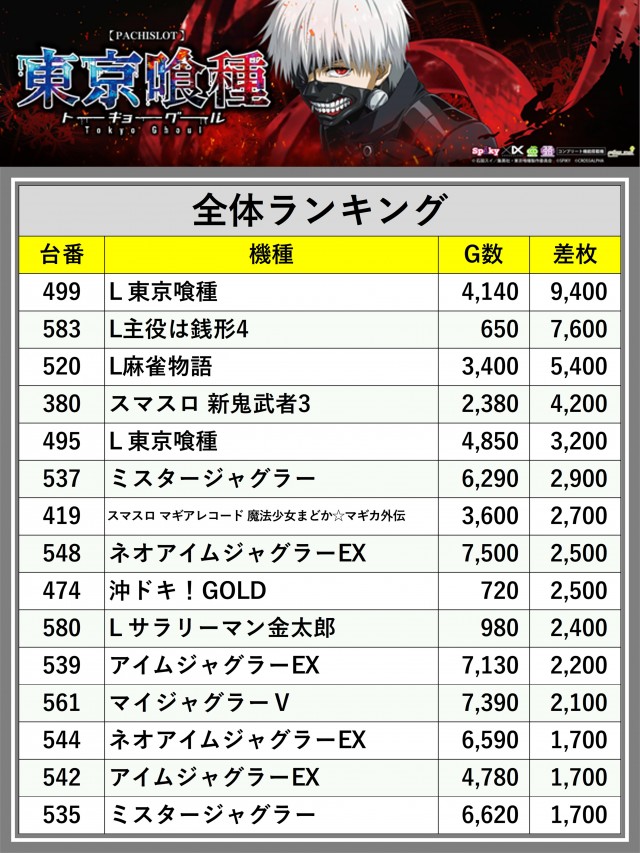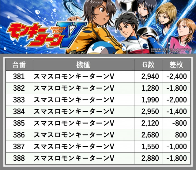 厳選された取材対象機種をはじめ、その他スロット全体から好記録が飛び出した!プレイヤーが楽しんだ1日を下記データにて振り返ってみて欲しい。