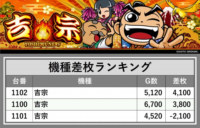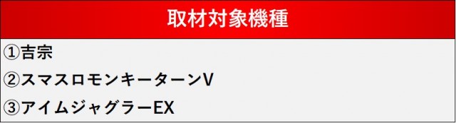 厳選された取材対象機種をはじめ、その他スロット全体から好記録が飛び出した!プレイヤーが楽しんだ1日を下記データにて振り返ってみて欲しい。
