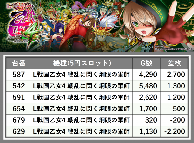 厳選された取材対象機種をはじめ、その他スロット全体から好記録が飛び出した!プレイヤーが楽しんだ1日を下記データにて振り返ってみて欲しい。