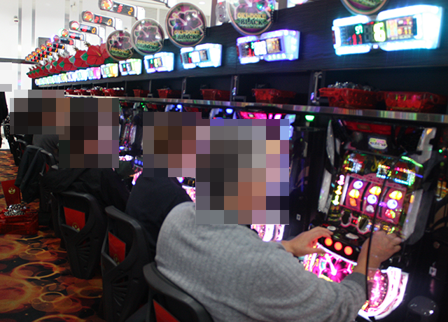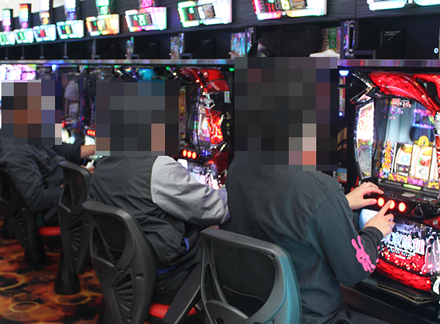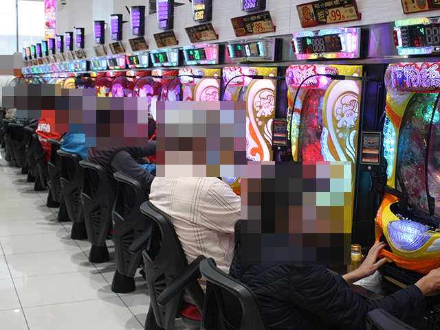 パチンコでは、「eフィーバーブルーロック」が満席となっており、伝わってくる雰囲気は明るい。