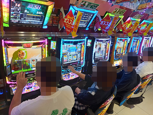 1000円/200枚パチスロの支持も厚く、様々な機種で楽しそうにレバーを叩くプレイヤーが見られた。