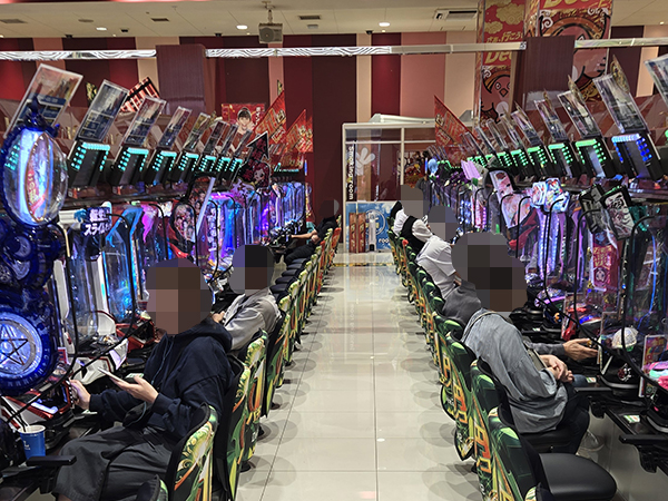 1000円/200枚パチスロの注目度も高く、空き台が見当たらないほどの支持を集めていた。