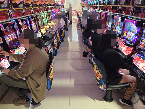 午後の1円パチンコでは「Pスーパー海物語 IN 沖縄5」などの海物語シリーズが人気で、プレイヤーの嬉しそうな様子を多数確認している。