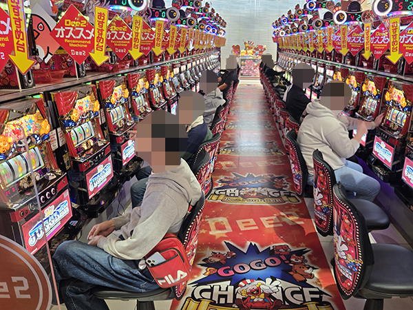 取材時は貸し玉料金を問わずプレイヤーでにぎわっており、各シマとも明るい雰囲気に包まれていた。