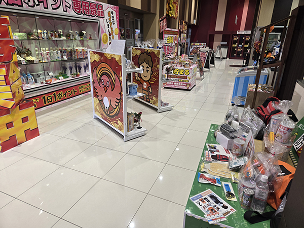 景品コーナーは豊富な品揃えで、防災グッズや来店ポイント専用景品など様々なアイテムが用意されていた。