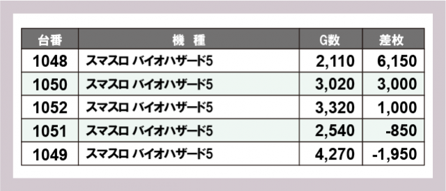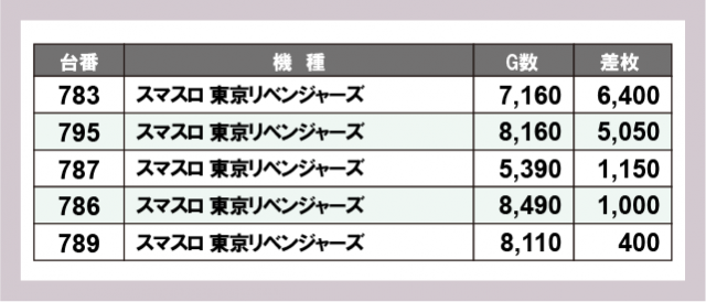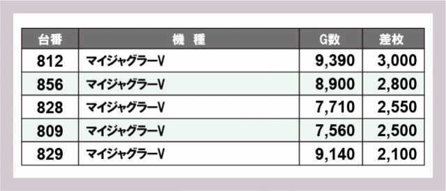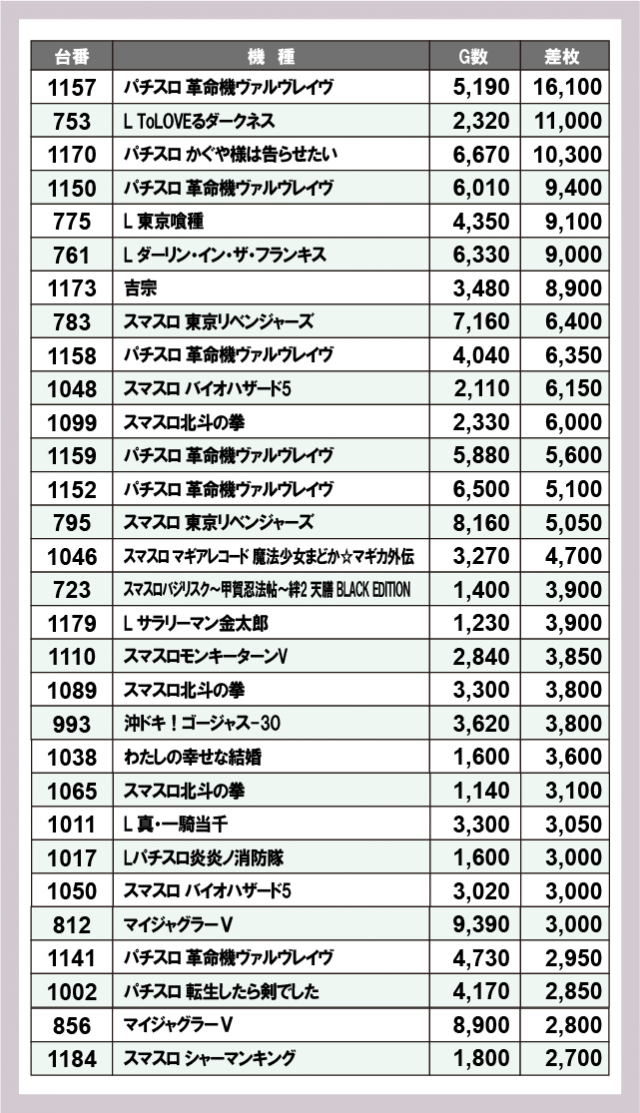 ※差枚数順に掲載しています