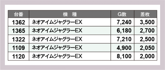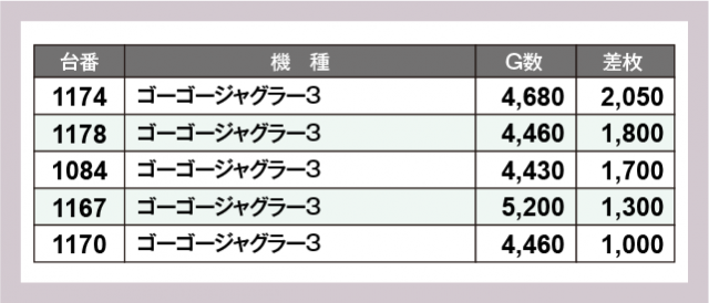 ※差枚数順に掲載しています