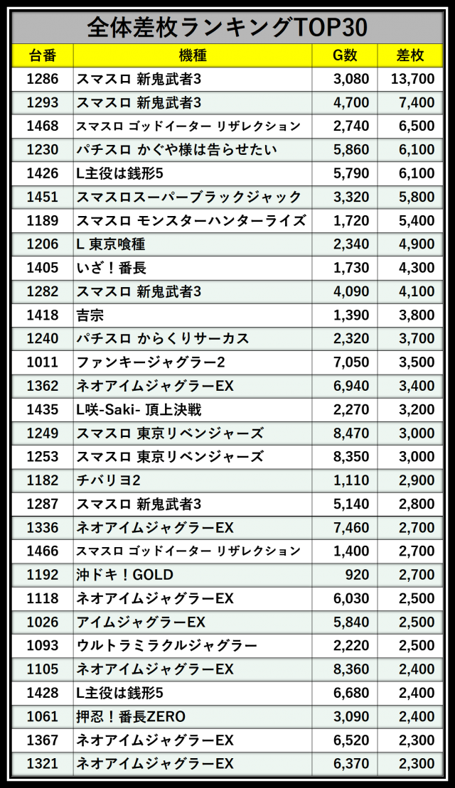 その結果の中から、ぱちタウンが注目すべきポイントを厳選してユーザーにお届け!プレイヤーが楽しんだ一日を下記データにて振り返ってみて欲しい。