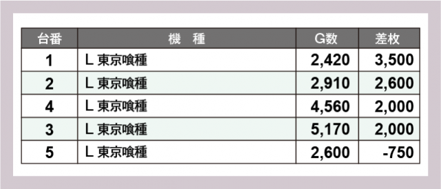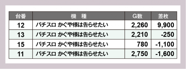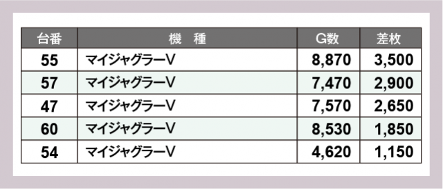 ※差枚数順に掲載しています