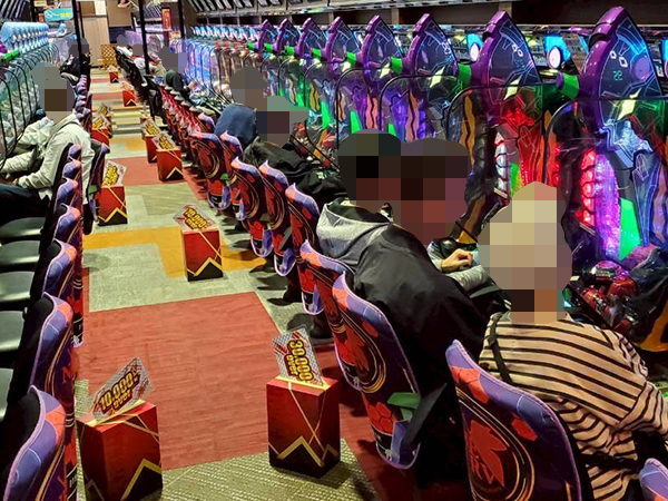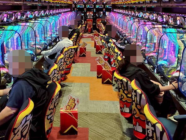 取材時は多くのプレイヤーが来店。パチンコ・パチスロともに、様々な機種が支持を得ていた。