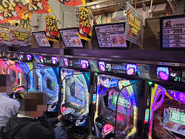 店内では貸し玉料金を問わず様々な機種で、心ゆくまで楽しむプレイヤーの姿が見られた。