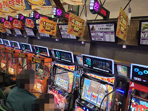 1000円/46枚パチスロに目を向けると、「スマスロ 新鬼武者3」や「L主役は銭形5」が微笑ましい状況。機種性能を最大限に発揮するプレイヤーが複数見られた。