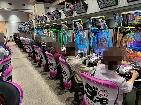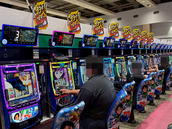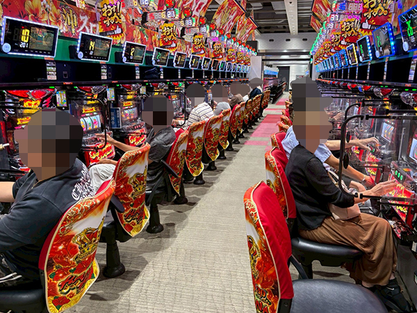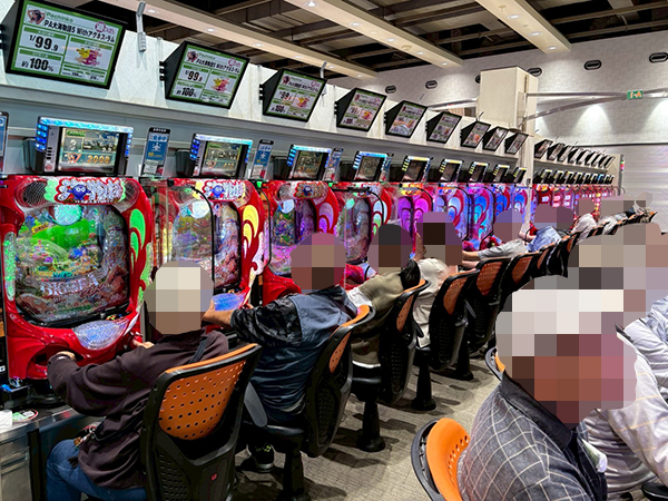 取材時は既に多くのプレイヤーが集結し、パチンコ・パチスロを問わずにぎやかな状況となっていた。