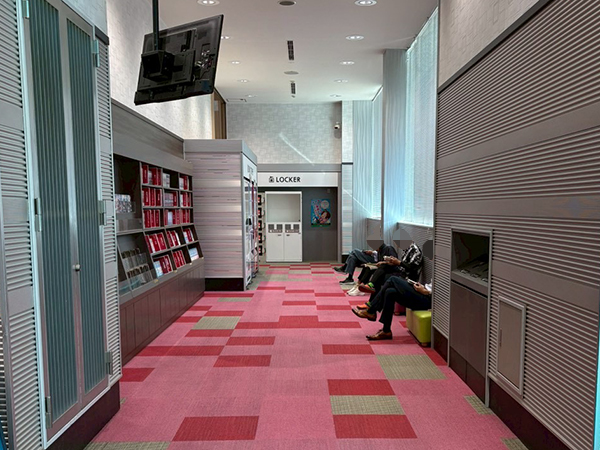 レストスペースには幅広いジャンルの漫画本が用意されており、取材時も満喫するプレイヤーが多かった。