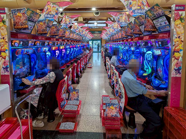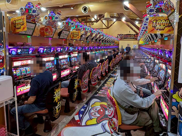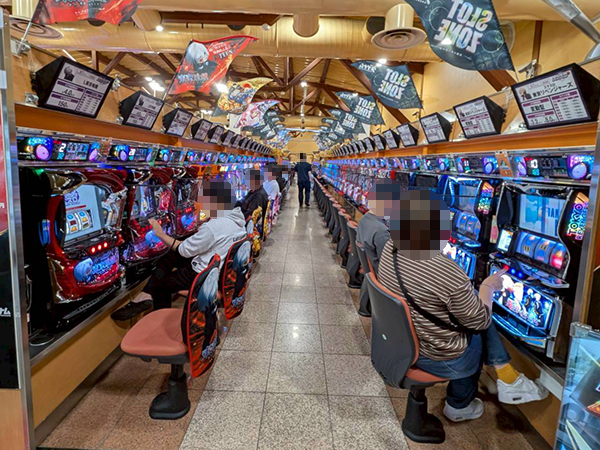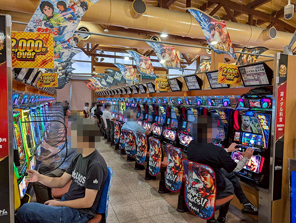 取材時は既に多くのプレイヤーが集結し、パチンコ・パチスロを問わずにぎやかな状況となっていた。