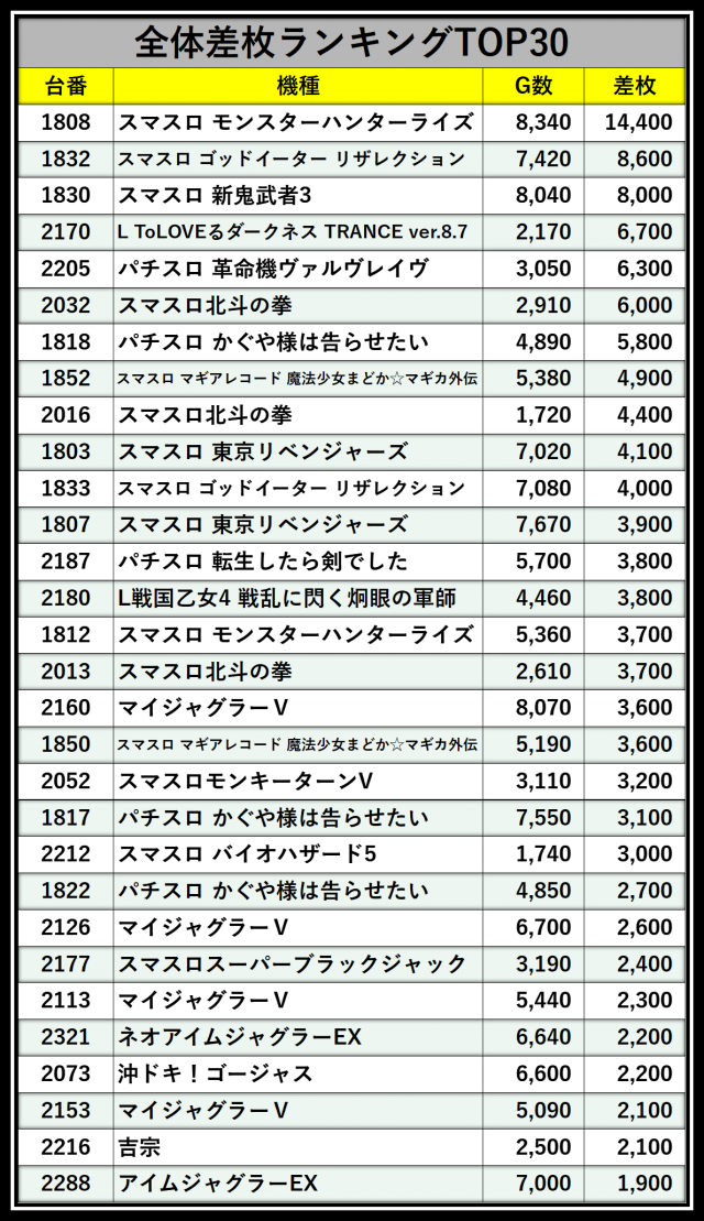 その結果の中から、ぱちタウンが注目すべきポイントを厳選してユーザーにお届け!プレイヤーが楽しんだ一日を下記データにて振り返ってみて欲しい。