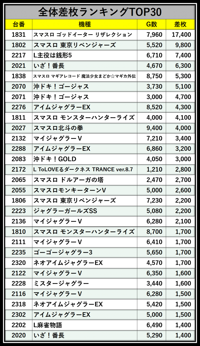 その結果の中から、ぱちタウンが注目すべきポイントを厳選してユーザーにお届け!プレイヤーが楽しんだ一日を下記データにて振り返ってみて欲しい。