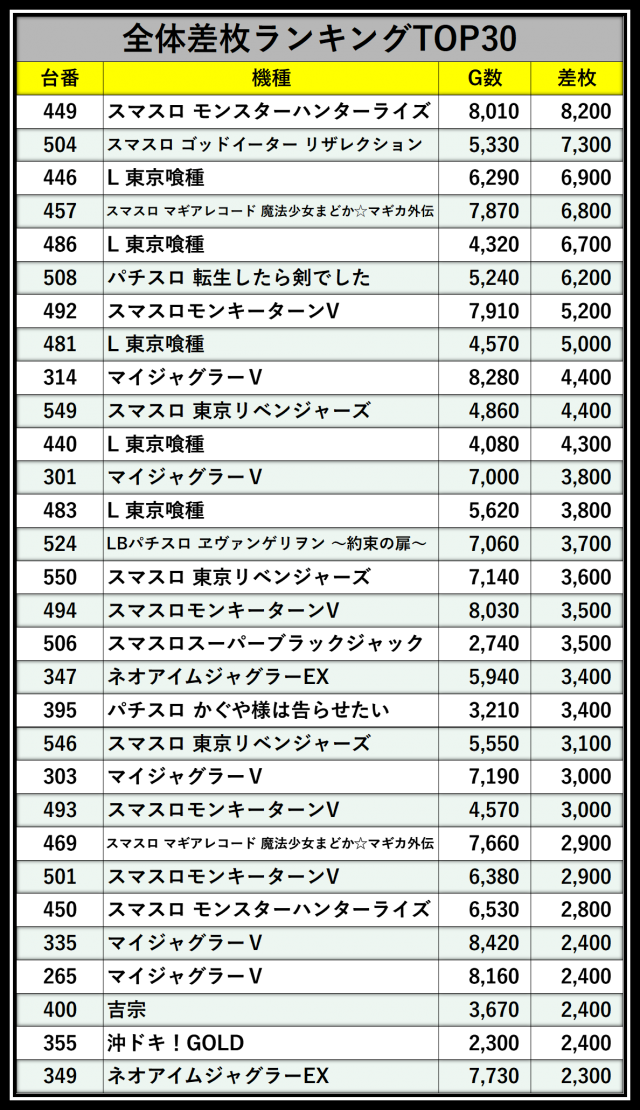 その結果の中から、ぱちタウンが注目すべきポイントを厳選してユーザーにお届け!プレイヤーが楽しんだ一日を下記データにて振り返ってみて欲しい。