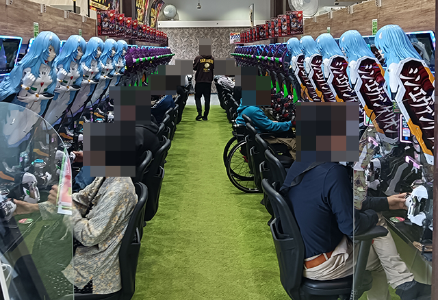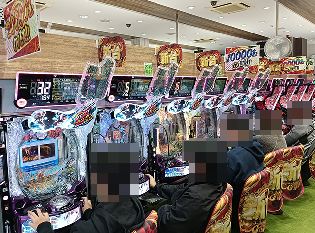 「新世紀エヴァンゲリオン~未来への咆哮~」や「ぱちんこ シン・エヴァンゲリオン Type レイ」も人気があり、あちこちに遊技を満喫しているような姿があった。