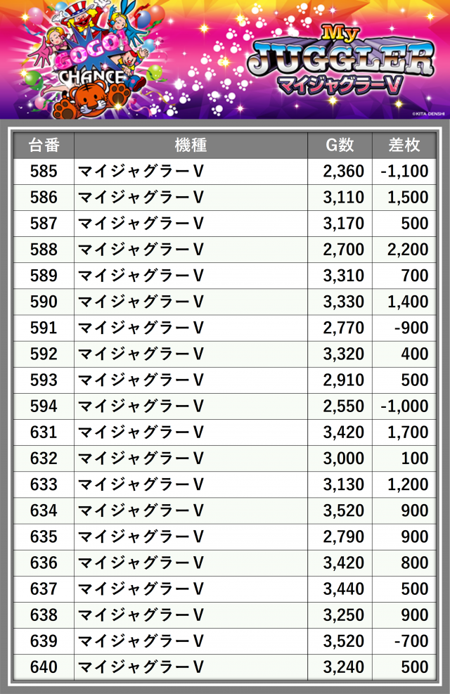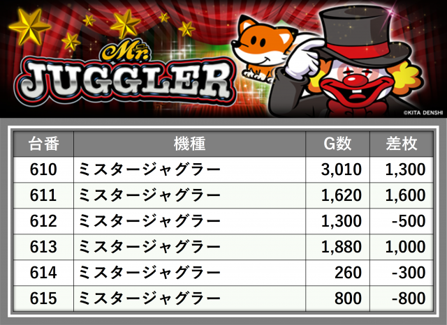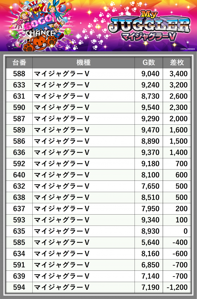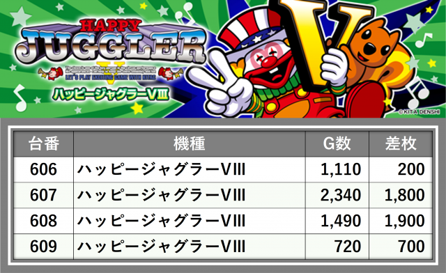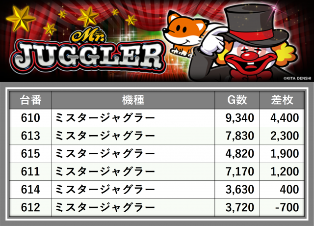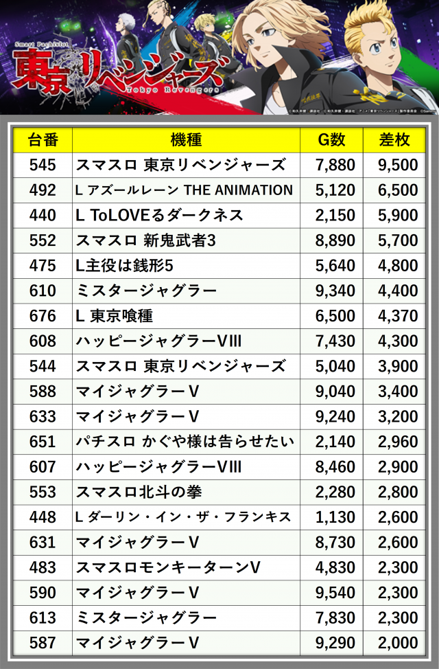 厳選された取材対象機種をはじめ、その他スロット全体から好記録が飛び出した!プレイヤーが楽しんだ1日を下記データにて振り返ってみて欲しい。
