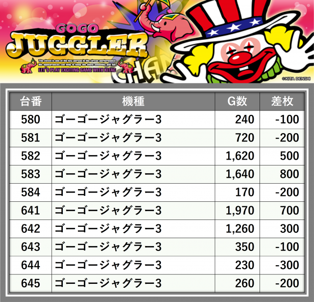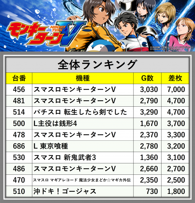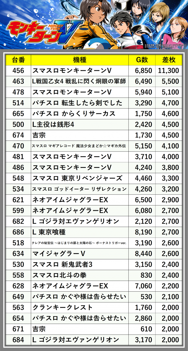 厳選された取材対象機種をはじめ、その他スロット全体から好記録が飛び出した! プレイヤーが楽しんだ1日を下記データにて振り返ってみて欲しい。