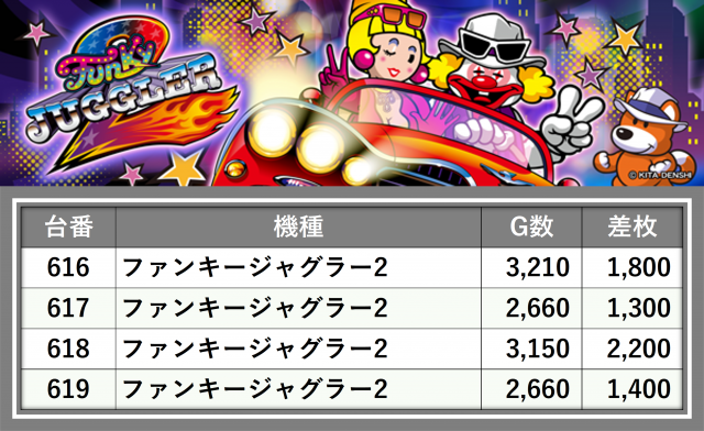 厳選された取材対象機種をはじめ、その他スロット全体から好記録が飛び出した!プレイヤーが楽しんだ1日を下記データにて振り返ってみて欲しい。