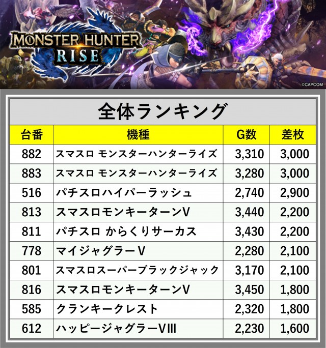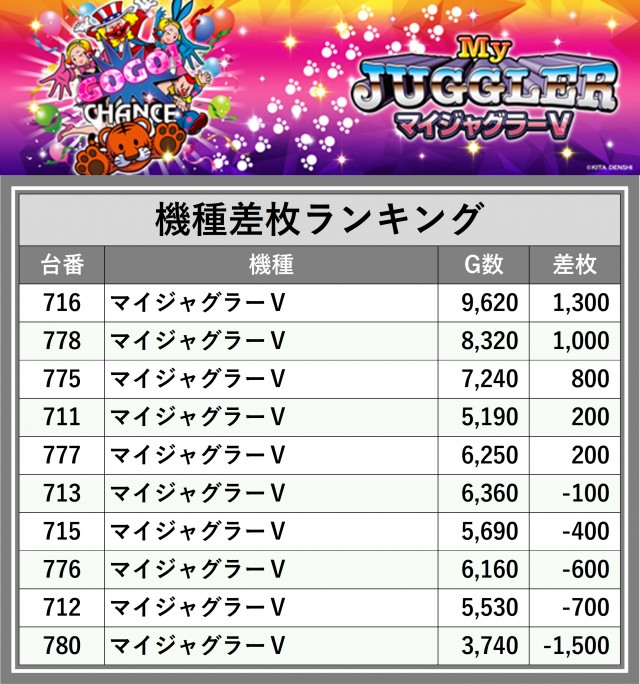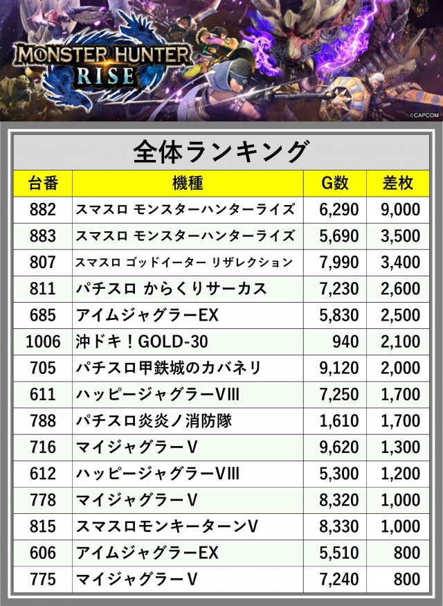 ※差枚数順に掲載しています