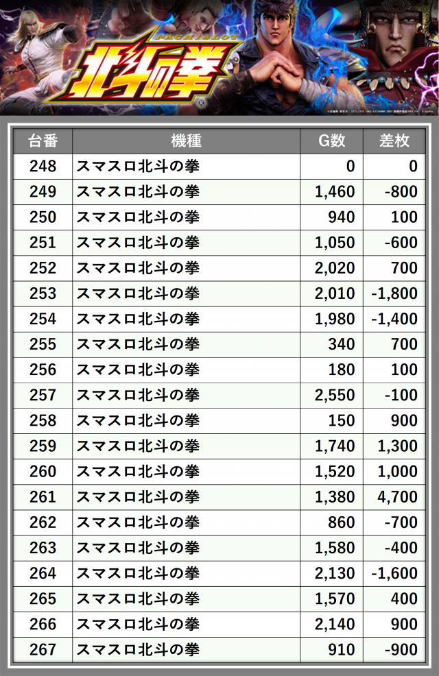 ※台番順に掲載しています