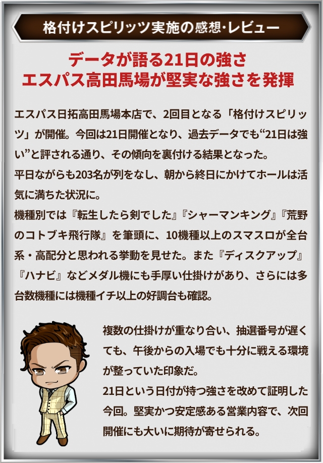 10月21日(火)エスパス日拓高田馬場本店にて、DMMぱちタウンの「格付けスピリッツ」を実施。