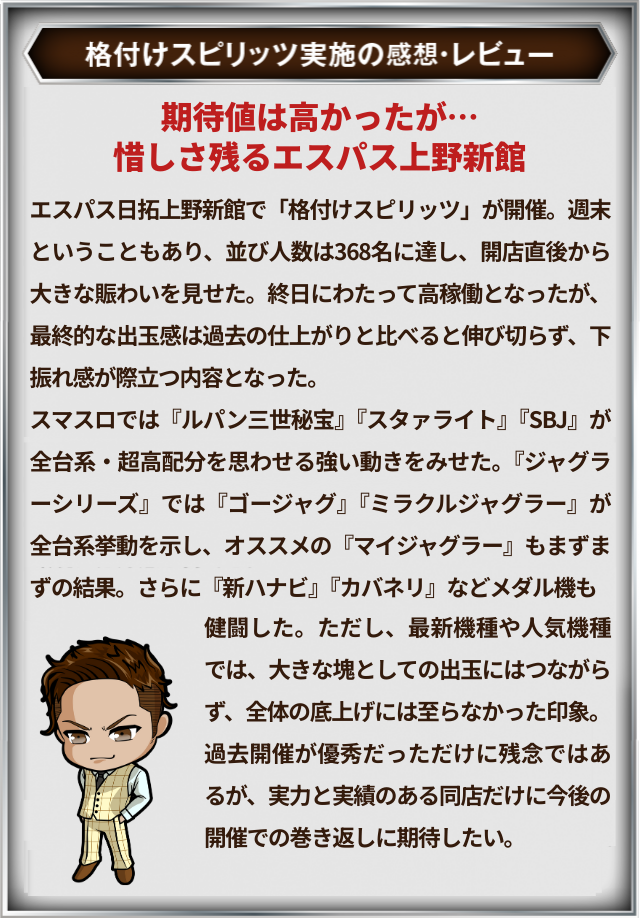 10月25日(土)エスパス日拓上野新館にて、DMMぱちタウンの「格付けスピリッツ」を実施。