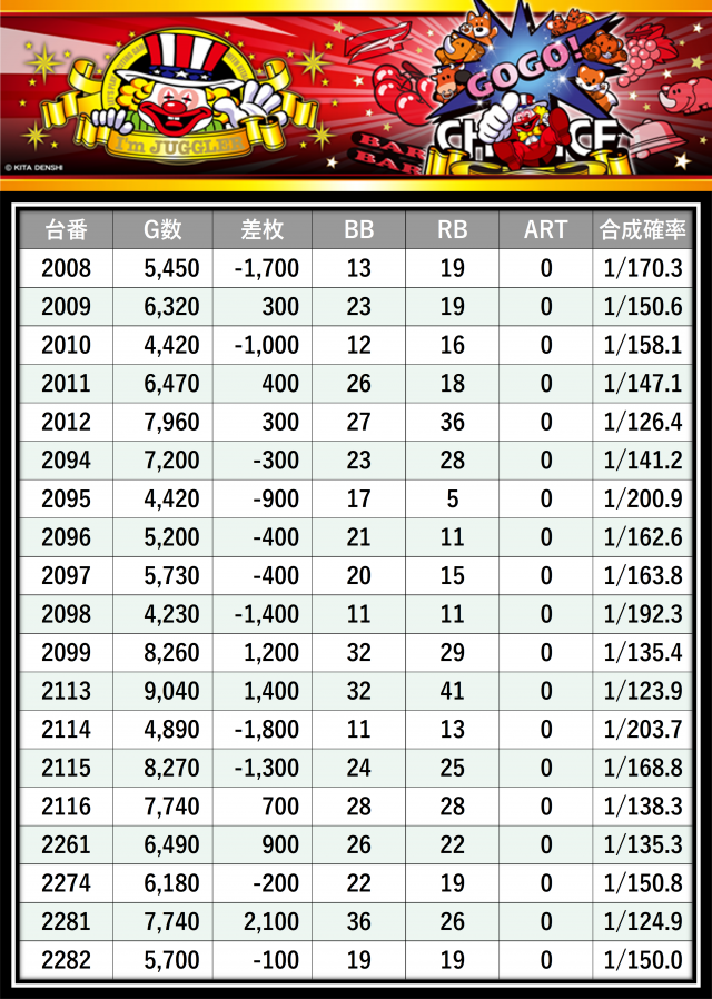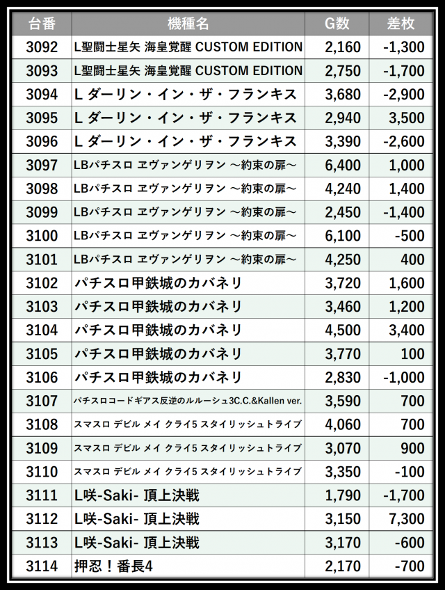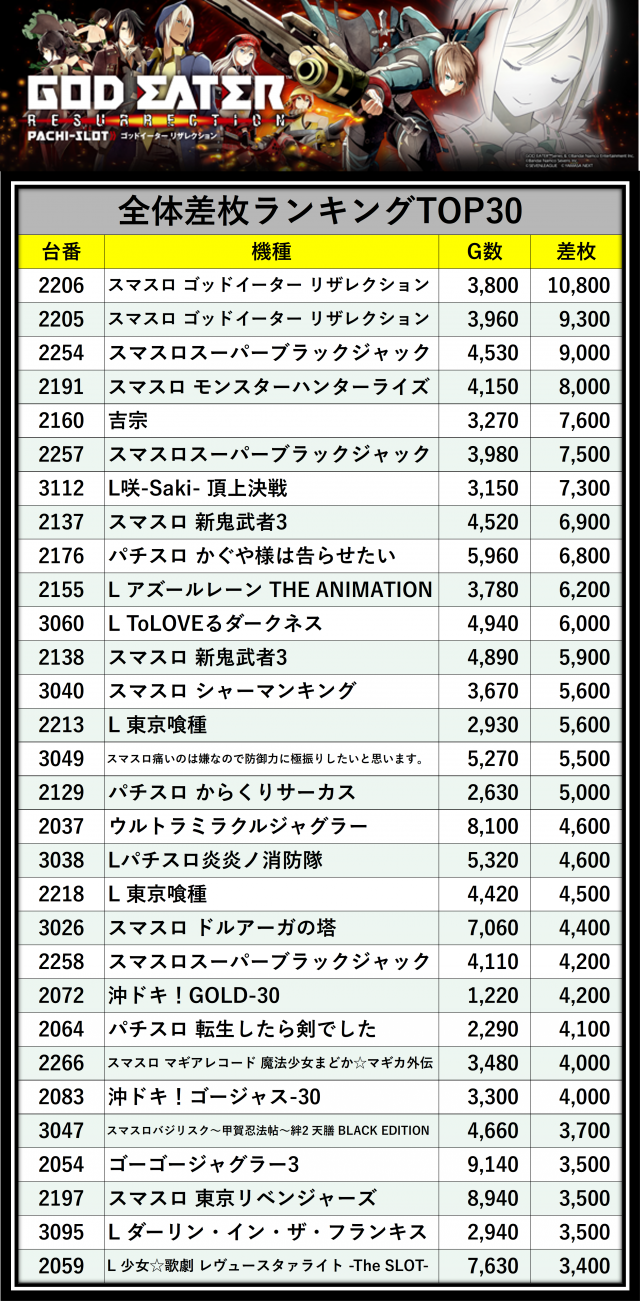 その結果の中から、ぱちタウンが注目すべきポイントを厳選してユーザーにお届け!プレイヤーが楽しんだ一日を下記データにて振り返ってみて欲しい。