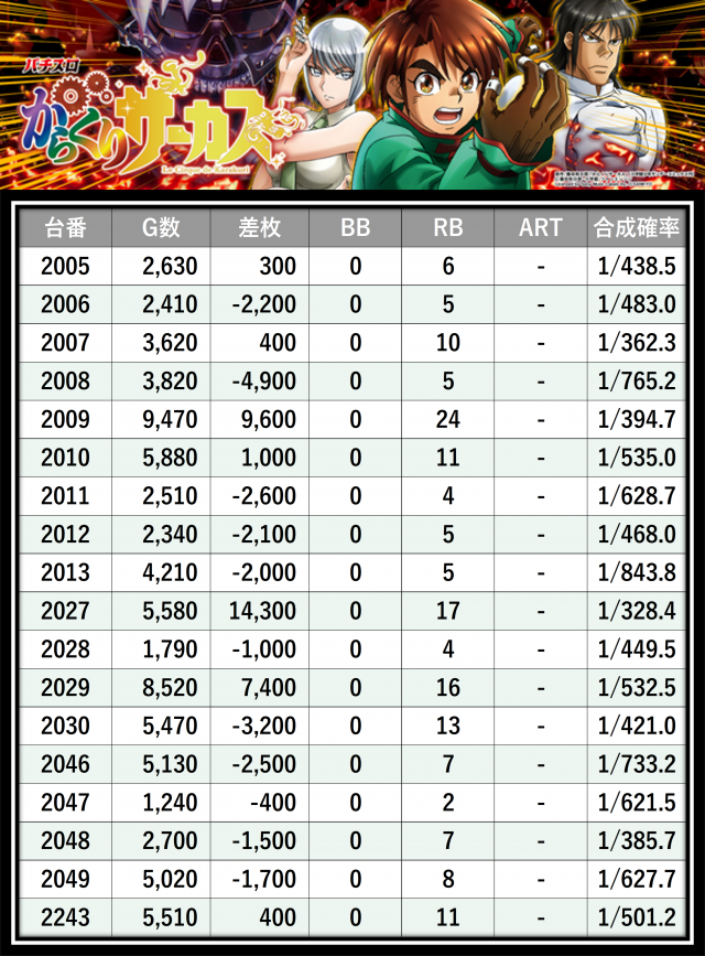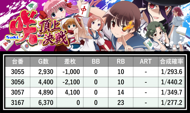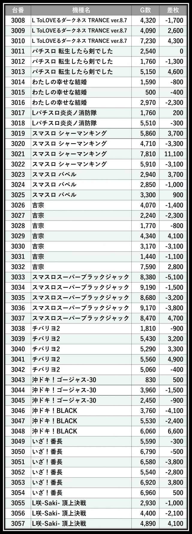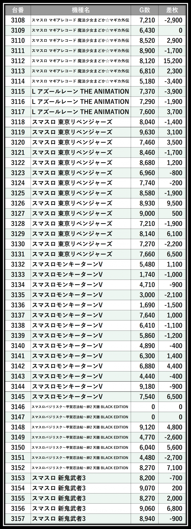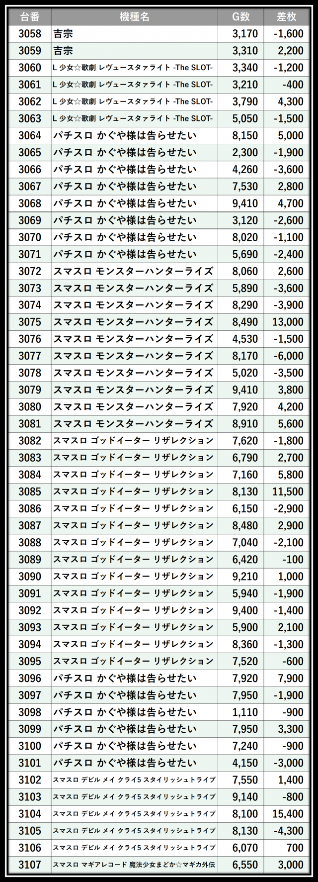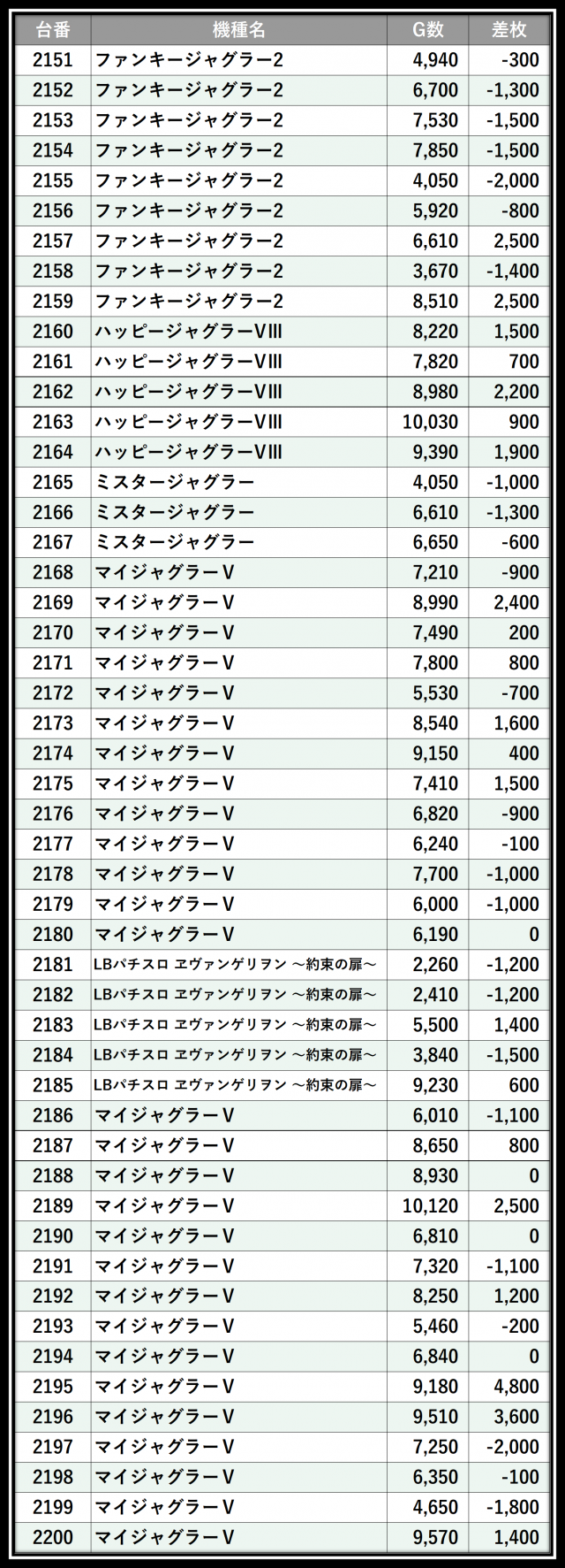 ※差枚数順に掲載しています